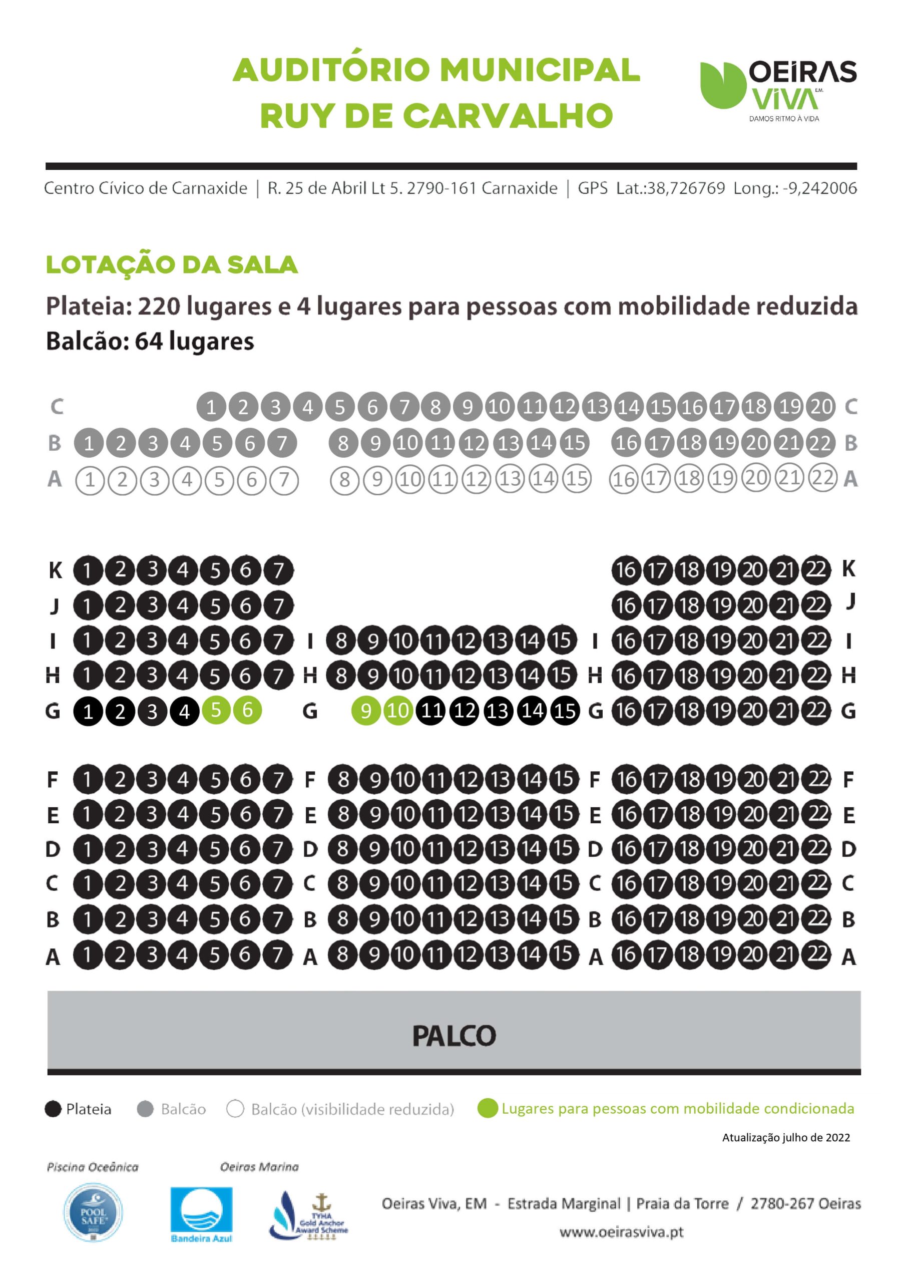 Os lugares serão atribuídos por ordem de inscrição segundo um modelo de atribuição programado que atribuirá os lugares das filas da esquerda para as da direita , começando pelas plateias até ao balcão.